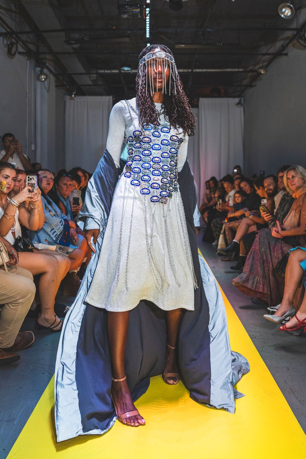 The following standout presentations centered around three distinct pillars that encapsulated this “take back” narrative: The Storytellers focused on traditional textile mastery and elevated craftsmanship, The Advocates showcased culturally-infused high streetwear with political undertones, and finally, The Sustainers highlighted ethical, land-based knowledge and practices.