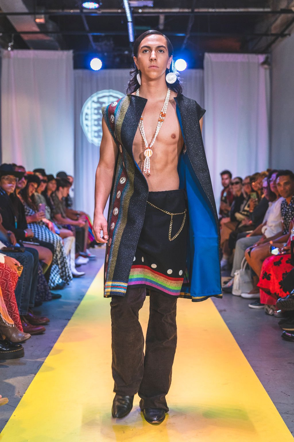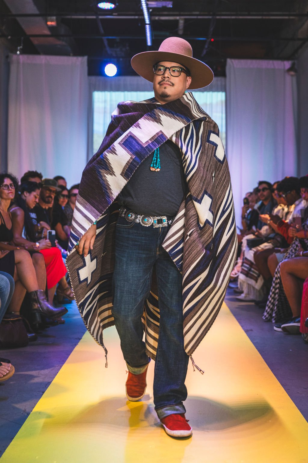 Fellow presenting designer, Jeremy Arviso (Diné/Hopi/Akimel & Tohono O’odham) of Original Landlords, echoed that sentiment: “We’re a force to be reckoned with and we know it. There’s a lot of responsibility with being the first in anything, but I know we’ve all been working our entire lives for this. Nobody is going to give us a platform so we have to build it ourselves.”